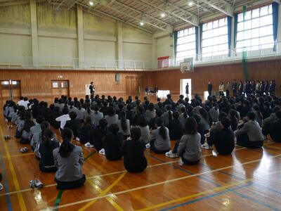 3月24日 令和7度の修了式および離任式を体育館において行いました。