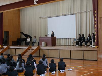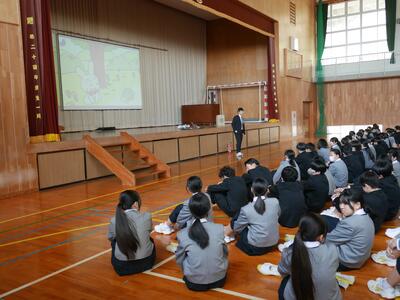2月27日 第2学年では体育館において「総合学習」を行いました。